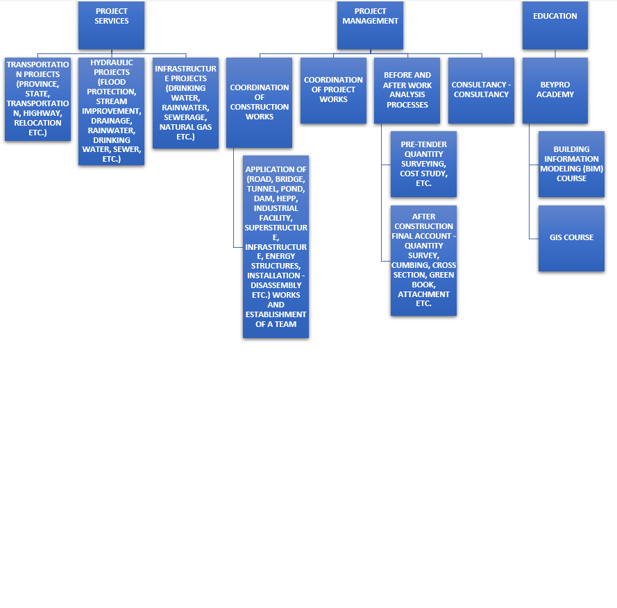 BEYPRO is a leading company providing innovative solutions in the engineering sector. Our company offers SURVEY ENGINEERING SERVICES, PROJECT PRODUCTION SERVICES, PROJECT MANAGEMENT SERVICES and TRAINING SERVICES with BEYPRO ACADEMY.